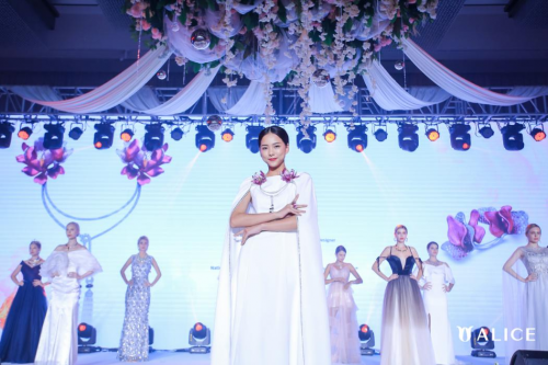 夜幕降临,一众贵宾来到“爱丽丝十大全球国花艺术珠宝发布会”现场。随着悠扬的音乐,梦幻的光影,来自不同国家的模特佩戴着自己国家的国花珠宝款款登台。