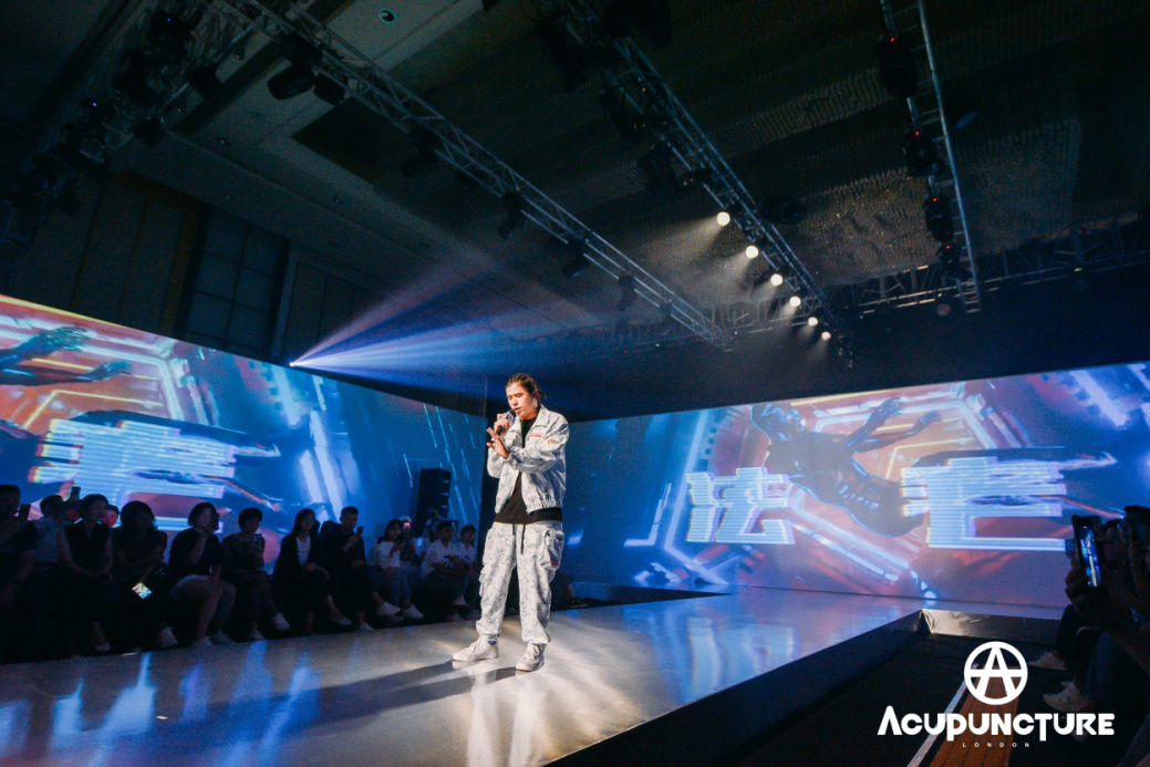 “嘀。”自以邀请函兑换入站卡的一刻起,各位时尚潮人就变身地铁乘客,被席卷入光怪陆离的伦敦地铁。复古流线型的灯箱,重金属风格的车厢座位,两侧车窗飞驰而过的风景,充满恣意跳跃的节奏感与打破界限的速度感, Acupuncture 用潮流手法打造出独一无二的沉浸式体验秀场,重现上世纪风靡全球的英伦街头文化带来的风格影响。首秀开场由品牌挚友硬核 rapper 法老强势登台,放肆燃爆现场。