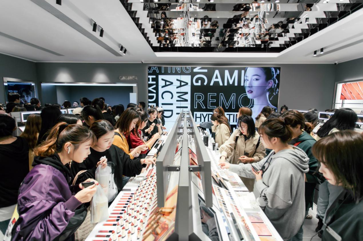 大量粉丝到完美日记西安店“打卡”。