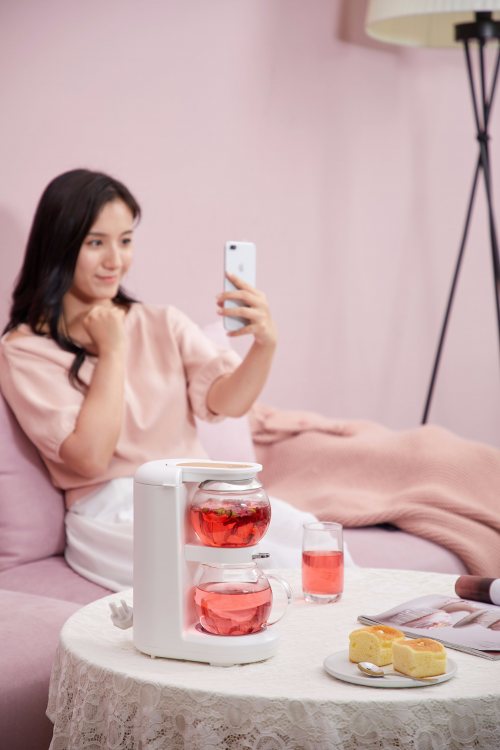 周末邀请闺蜜家里做客,拿出鸣盏茶饮机泡上一壶乌龙茶,在等待泡茶的时间里,切几块蜜桃果肉备用,待茶泡好后加入,这样一杯网红茶饮就轻松搞定了。不必排队,也无须额外花费,拍下美照发送朋友圈,做最有生活情调的小仙女。