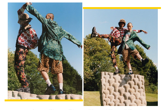 左:Versace - 衬衫 / GCDS - 开襟衫/ Facetasm - 裤子 / Sacai - 鸭舌帽 / Gucci - 运动鞋