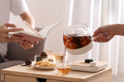 鸣盏养生煮茶器配设自动和手动两种操作方式,智能实用。自动烹煮,非常适合快节奏的都市生活。加好水后不必看管,几分钟便能烧开一壶茶。手动模式,则适合假日小憩和居家休闲时使用,细烹慢煮,看茶汤在壶内逐渐浸染着色,随心控制茶味浓淡,别有一番煮茶之趣。