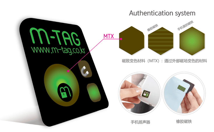 标题中提到的M-Tag,就是他们公司旗下的产品之一。M-Tag是世界上首例使用了纳米技术开发生产的防伪标签产品。其核心材料为MTX,全称为Magnetically color-changeable material,中文名称是磁致变色光结晶材料。 磁致变色光结晶材料(MTX)是一种通过外部磁场来改变自身颜色的新材料,可有效用于正品验证,切断假冒伪劣的源头。
