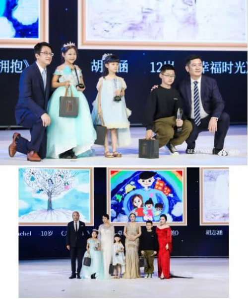 之后我们揭晓了本年度征集的儿童慈善画作的现场投票结果,希冀大爱从童真开始,带来温暖与光明,缔造纯粹之美。不仅如此,柏荟也将入围的18幅小画家作品拍下,并以捐款的形式,通过环球夫人组委会,捐赠给联合国妇女署慈善事业,让爱跨越国界。