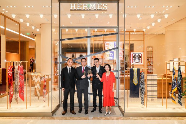 爱马仕中国零售总监张海军先生、爱马仕大中华区总裁曹伟明先生、青岛海信广场董事长周涛先生、爱马仕青岛海信广场专卖店经理魏华女士共同为爱马仕青岛专卖店全新揭幕庆贺