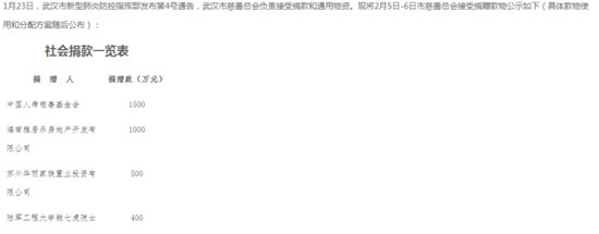 在武汉慈善总会官方网站公开的社会捐款一览表上可以看到,每天的爱心捐助都在接力奔跑。这里有滚烫的华夏儿女赤诚之心,也有山川异域、风月同天的外域手足之情。