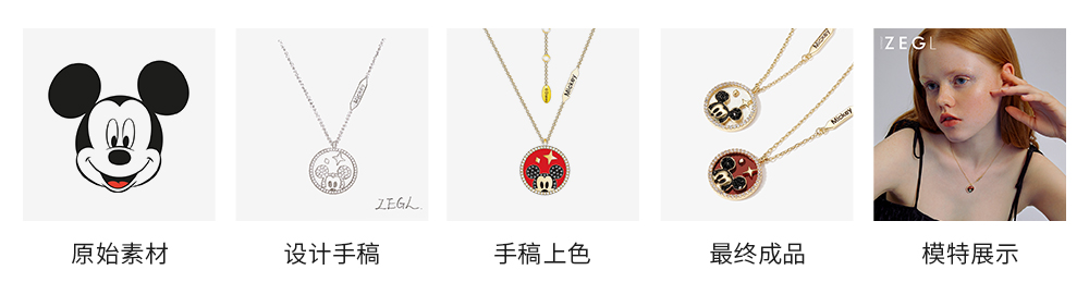 迪士尼的经典米奇形象元素其实很简单,我们看到两个耳朵,一个圆脸,就能联想到米奇的趣致形象。而能将简单的元素运用的精彩,才是有高度设计能力的ZENGLIU所追求的。从米奇首饰系列中,消费者可以看到立体感、层次感,这在之前是很难想像的,因为饰品本身体积很小,要呈现出立体感与层次感,并且把米奇的形象生动的呈现出来,这十分考验品牌的设计解读能力与工艺。