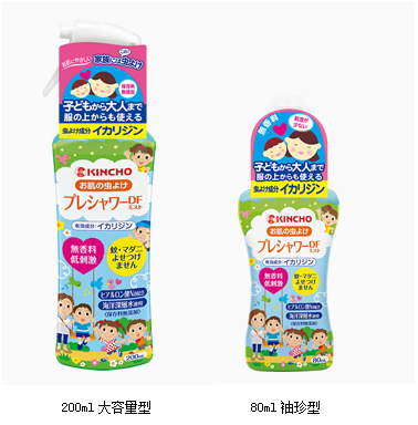 所以通过朋友的介绍,购买了日本KINCHO金鸟 PRESHOWER DF 防蚊喷雾,单看包装一股健康的气息扑面而来,一家子其乐融融的卡通图案,特别适合亲子游时使用。分别有80ml袖珍型、200ml大容量型,两种规格小编都入手了,袖珍型平时出门带着用,大容量型放在家里随时用随时喷。