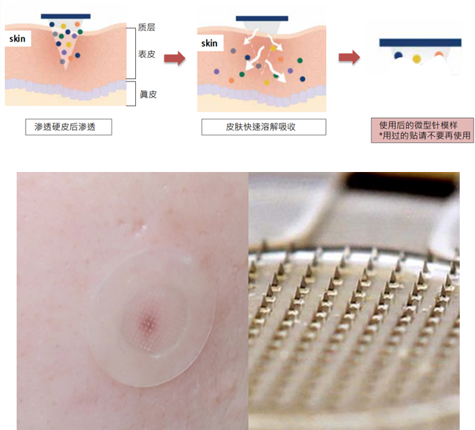 日常生活中经常使用的涂抹型化妆品难以通过皮肤屏障,因此实际上被吸收的成分非常少,对于改善皮肤效果也不明显。而微针型护肤品则可以穿过皮肤的角质层到达皮肤深层,最大限度的改善皮肤状态。