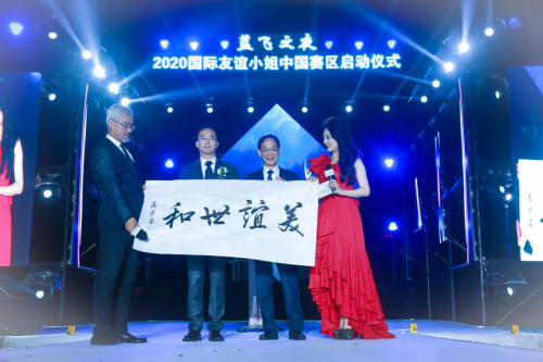 当晚,星光熠熠,热闹非凡,原国家文化部副部长潘震宙为赛事启动致贺词并将亲自题写的“美谊世和”赠予国际友谊小姐组织主席陈军先生。随后,陈军先生为蓝飞集团董事长张雨健先生进行中国赛区承办权的现场授牌,张雨健先生为香港著名导演钟少雄先生颁发赛事总顾问聘书等各项环节。