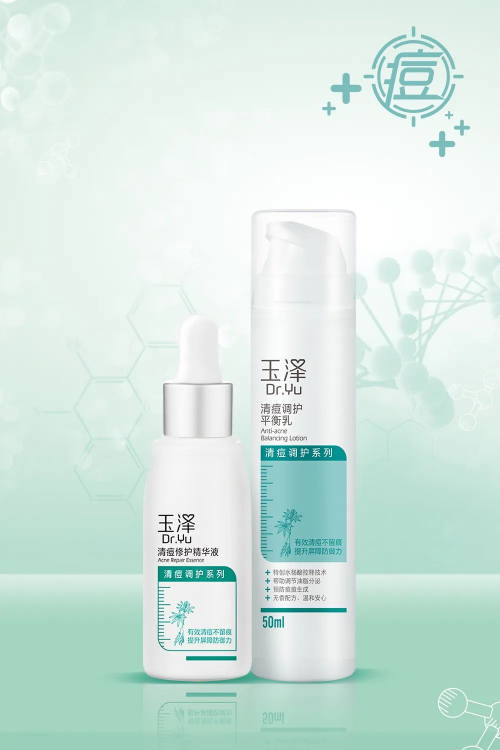 (玉泽战痘“CP”-左为玉泽清痘修护精华液,右为玉泽清痘调护平衡乳)