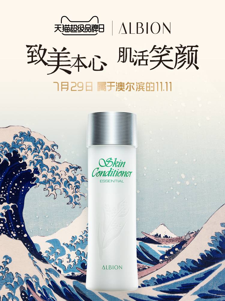 为配合天猫超级品牌日,ALBION澳尔滨与波士顿美术博物馆进行深度合作,推出浮世绘系列藏品联名定制礼盒,充满日式素朴精致风味的礼盒包装与多种制作精美的周边文创吸引了众多对日式之美欣赏者的关注。品牌代言人张若昀更为此次ALBION澳尔滨天猫超级品牌日拍摄了专属文化大片,片中张若昀因浮世绘作品穿越次元,开启了一场由澳尔滨爽肤精萃液带来的时空穿梭之旅,传递出别具一格的美学体验的同时,完美诠释出此次超品主打话题#致美本心,肌活笑颜#。
