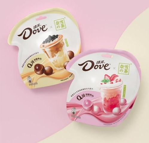 德芙联合奶茶品牌奈雪,研制首个“嚼着吃的巧克力“——全新珍珠奶茶巧克力。参考奈雪最火爆经典茶款,德芙打造两个口味的珍珠奶茶巧克力,草莓芝士波波丸和黑糖奶茶波波丸惊喜诞生。Q弹的软心加上入口即化的巧克力,碰撞出细腻平滑、层次丰富的奇妙口感,给爱奶茶的你出乎意料的味觉体验。