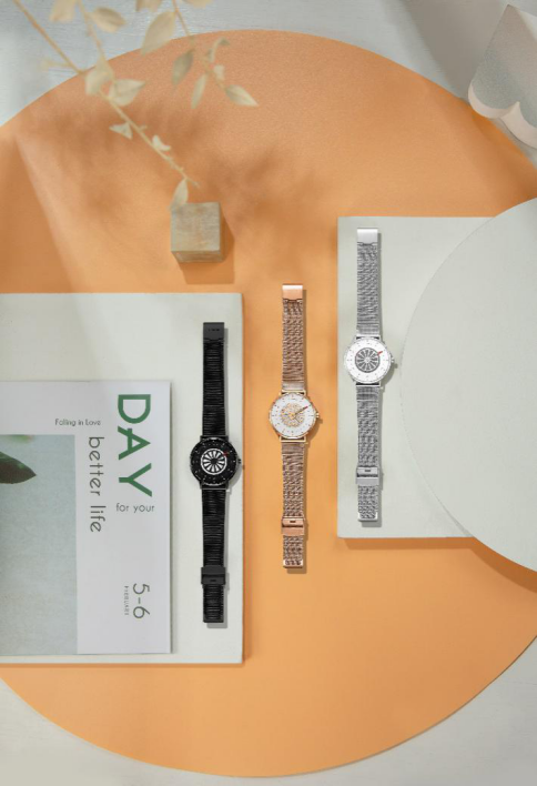 尼维达NIVADA“柠檬精”系列石英腕表,依然保留品牌特有的机械元素,流线圆弧,完美的人体工学设计,使探索时间的双眸毫无阻碍的前行。圆润的花火纹理大表盘,与内侧放射纹表盘完美呼应,放射纹路宛如切开的一颗柠檬,使腕表的金属感更显温暖,造型更显生动。数字时标与普通腕表硕大的阿拉伯数字不同,它们就像一颗颗柠檬果粒分布在表盘上,散落在内侧“柠檬片”四周,可爱与灵动并存。从表盘细节可以看到,亮点在红色轮式造型的表针设计,宛如一支箭射中你的心。单人佩戴,闺蜜成双,情侣对表,无论哪一种形式的佩戴出街,都是又飒又美,让人羡慕、酸成“柠檬精”。