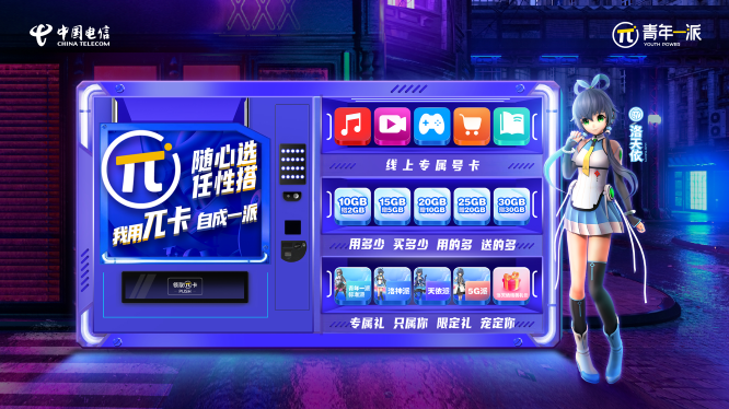 2020年9月26日晚20:00,中国电信正式发布年轻客户品牌“青年一派”。有别于以往发布会形式,中国电信和B站“梦幻联动”,联手打造了一场酷炫的数字派对。深受年轻人喜欢的虚拟歌手洛天依变身“青年一派”品牌星推官,现场与各怀绝技的B站UP主天团、年少有为的Z世代青年,一起上载全新的数字星球“π星球”,用光浪点亮“青年一派”品牌logo,传送“我有我样,自成一派”的品牌精神。数字派对上同步推出了“青年一派”Z世代线上专属产品“π卡”。中国电信5G IP形象“5G未来大使”也首次萌趣亮相。