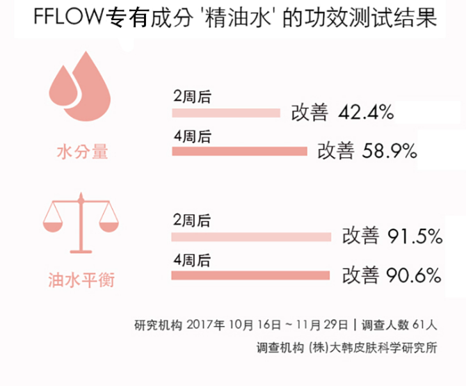 FFLOW精油水镇定面膜成分温和,无忧虑成分,即使敏感肌肤也可以放心使用。其中积雪草提取物有卓越的镇静肌肤效果,榧子树油可以改善肌肤状态,净化排毒, 使肌肤恢复正常状态,而FFLOW精油水镇定面膜独家专有成分精油水则能够保持肌肤油水平衡,牢牢锁住肌肤中的水分,润泽不紧绷,让肌肤更加水润清爽。