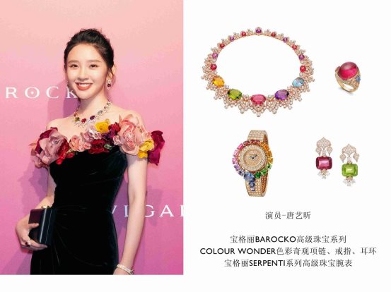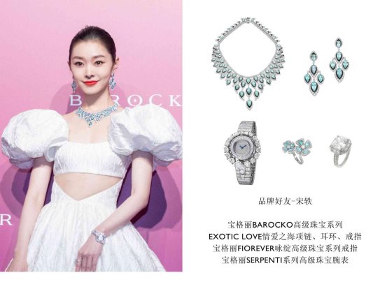 品牌好友宋轶佩戴宝格丽Barocko高级珠宝系列Exotic Love情爱之海项链、耳环及戒指,Fiorever咏绽高级珠宝系列戒指、Serpenti系列高级珠宝腕表,优雅温婉,光彩照人。