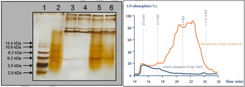 像K Klarity SG胶原蛋白采用德国专利技术,水解程度高,2000D分子量大小可以达到人体最佳的吸收效率(胶原蛋白分子量以1000-2500D最佳,大于3000D吸收率不高,小于1000D稳定性不够)。据临床实验,口服K Klarity SG胶原蛋白几乎100%的被胃肠道迅速吸收,12小时内血浆中胶原蛋白肽含量显著增加,在包括皮肤在内的多个器官和组织中均可检测到不同数量的胶原蛋白肽。
