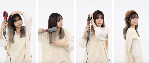 ÏÈ´îÅäÔ¤ÔìÐÍ·ç×죬Óô÷ÉAirwrapÃÀ·¢ÔìÐÍÆ÷½«Í··¢´µµ½°Ë³É¸É;È»ºó½«Åä¼þÌæ»»ÎªË³»¬Êᣬͨ¹ýÆøÁ÷½«Í··¢ÊáÀí˳ֱ;Ö®ºóʹÓÃ40ºÁÃ׵ľíͲ£¬Ë³¡¢ÄæÊ±ÕëÁ½¸ö·½ÏòµÄ¾íͲ·Ö±ð¶ÔÓ¦×óÓÒÁ½²àÍ··¢Ê¹Ó㬴òÔì×ÔÈ»¾í·¢Ð§¹û;×îºóÓÃԲͲÊá´òÔì¿ÕÆøÁõº££¬´÷ÉϰٴîµÄ´óµØÉ«Ïµ±´À×ñ£¬¾ÍÄÜ¿ìËÙ´òÔìÖÜÄ©ÓëÅóÓѾۻáÅɶԵÄʱ÷ÖÔìÐÍ¡£