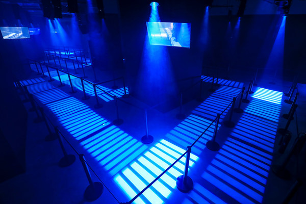 迷宫:在新概念屏障迷宫里,墙壁间蜿蜒的照明路径映射出旅客的移动路线