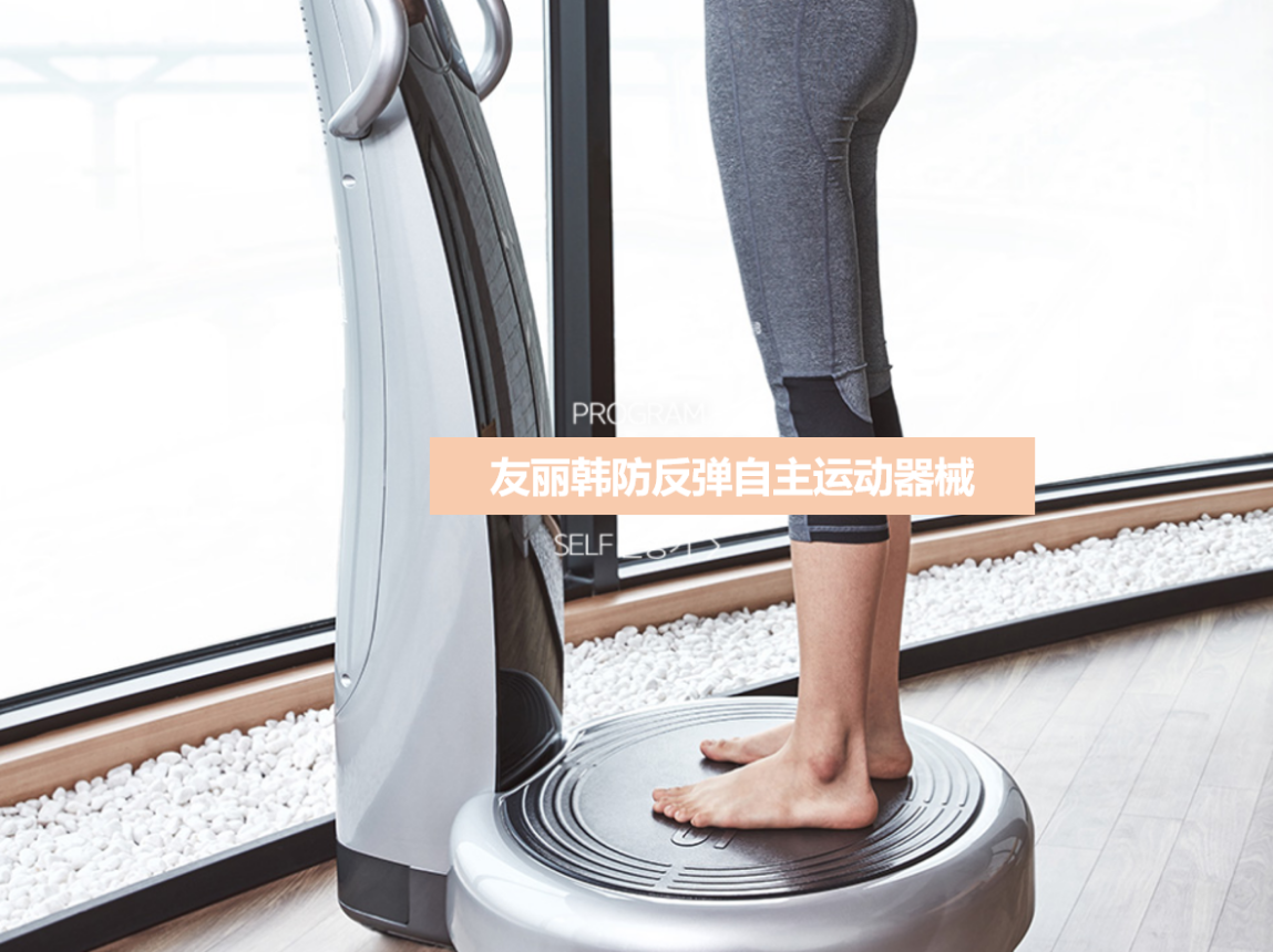 友丽韩的管理项目中还包含了自主运动仪器,用来防止减肥效果反弹,包括声波振动仪,毛管运动仪和远红外线太空舱。声波振动仪是站在上面,通过机器超低频声波的振动,连带人体产生振动,产生有氧运动效果的一台仪器。该仪器不仅能强化肌肉还可以有效帮助体内蛋白质吸收量的增加。毛管运动仪则是一款将人固定在仪器上面,通过头下脚上的45度倾斜振动来使不经常用到的肌肉部位得到运动还可以起到对内脏器官的复位效果。远红外线太空舱则是通过红外线和加温来加快新陈代谢的速度,从而加快体内脂肪代谢和排出的仪器。