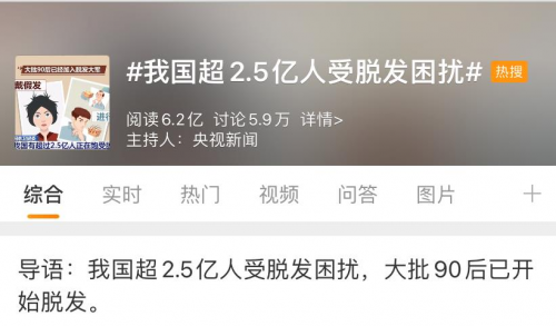 前段时间,一则#我国超2.5亿人受脱发困扰#话题冲上微博热搜,让不少网友“秃”然慌了......继996之后,“未脱单先脱发”又称为了当代年轻人的又一标签。