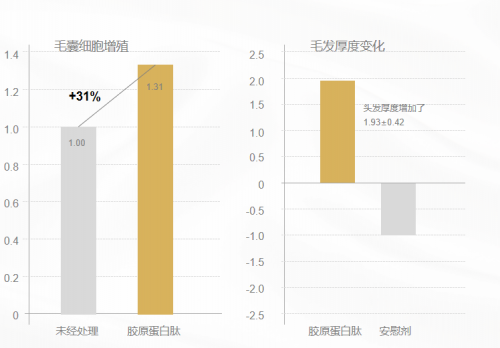 研究人员还对人体的毛囊细胞做了体外的试验,与未经处理的毛囊细胞相比,经生物活性胶原肽处理的细胞在四小时后,增殖率显著增加31%。