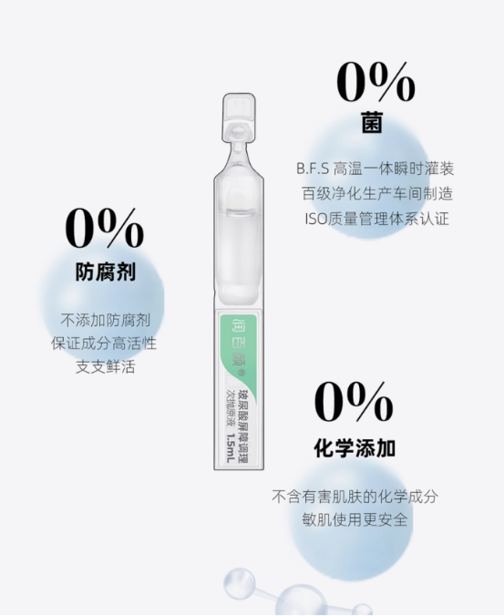 再加上润百颜作为次抛原液开创者,首创B.F.S吹灌封3秒一体灌装的医药级次抛剂型,让产品实现了无菌、无防腐剂、无化学添加,支支鲜活,精纯高效。产品从灌装到密封只需3秒钟,不需要额外添加防腐成分,最大程度保证了原液的活性。这样的产品正是最适合受损、脆弱的敏感肌使用的。