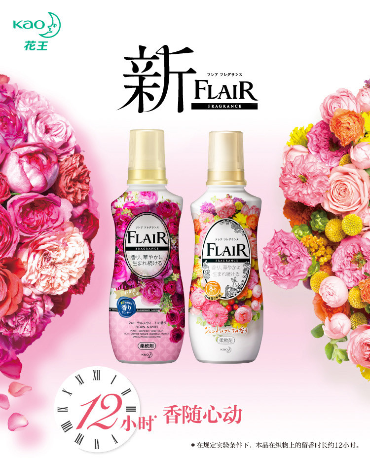 衣物洗涤之后一般会进行柔顺护理,花王衣物柔顺护理系列产品,帮助减轻衣物褶皱、静电等烦恼,令衣物柔软舒适,散发迷人香气,12小时长效留香,洗后放置在衣柜里,香味余存,感受自然芬芳。