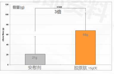 研究表明,每日服用3支Klarity小蜡笔胶原蛋白,3个月后可以观察到骨密度显著上升,与安慰剂组相比,口服胶原肽,骨量增加了68g,是安慰剂组的3倍。
