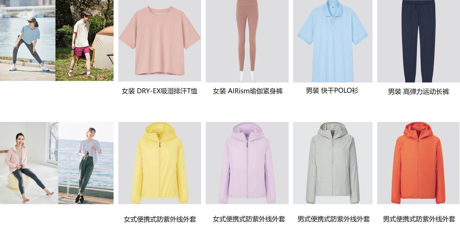 夏日来袭,快干功能不可或缺,运动也要舒适又有型,释放别样魅力。DRY-EX速干T和DRY POLO采用高功能速干面料,吸汗快干且透气舒爽,暴汗时刻也尽享清凉,轻松开启运动健康生活,尽情享受每一次酣畅淋漓的运动;身着DRY POLO衫畅快驰骋球场,无需再受汗渍侵扰,享受无束缚自由奔跑感;AIRism透气瑜伽裤 采用AIRism舒爽面料,凉感亲肤,弹力运动长裤高弹无束缚,助力日常运动场景,让你随心舒展,畅意而行! 高温如约而至,UV Protection防晒系列高能抵挡紫外线侵袭,瞬间防晒,安心防护。作为优衣库明星商品,优衣库防晒系列丰富款式可供选择、便携式剪裁设计方便又利落,高品质面料加持,不管都市生活、户外活动、舒适运动还是得体通勤,多种场合皆可穿,全面高效防护,舒享夏日乐趣生活。