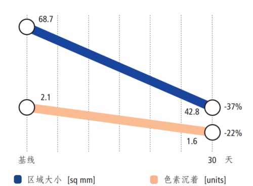 另一项临床研究证实,每日服用皛皛番茄美白丸能有效减小人体色素沉着面积。在一项临床研究中,30名黄褐斑患者每日服用1粒皛皛番茄美白丸,4周后色素沉着皮肤区域减少了37%,更重要的是,参与试验的女性平均色素沉着密度降低了22%。
