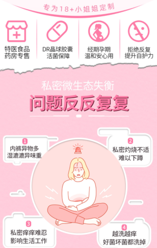 特点一:特医食品。即特殊医生功能食品,其管理法规严格程度仅次于药品,适用于患有妇科问题后,身体功能的调节。如建立私处PH值弱酸环境,增强自洁能力,效果远超普通益生菌类保健品。