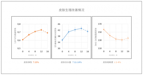 同时可以观察到皮肤含水量的大幅上升以及粗糙度的下降,对于25岁左右的肌肤来说,拥有饱满充足的皮肤弹性,就已经能够解决当下年龄抗老的全部需求了。所以Klarity小蜡笔胶原蛋白十分适合作为轻熟龄的抗老保养品。
