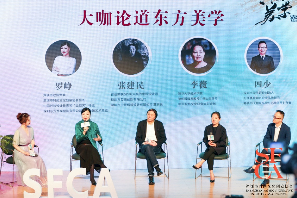 张建民以丝绸之路为切入点,详解设计之美的价值,东方美学内在的强大;罗峥从东方的“一元”文化与西方的“二元”文化对比中,阐述为何东方美学能够引领世界时尚;李薇从每个人需要找到自己的DNA出发,表达建立独特标识的重要性;四少作为品牌营销资深研究者,通过一系列传播事件表达出在不确定时代,东方美学是每一位中国人禀赋的观点。