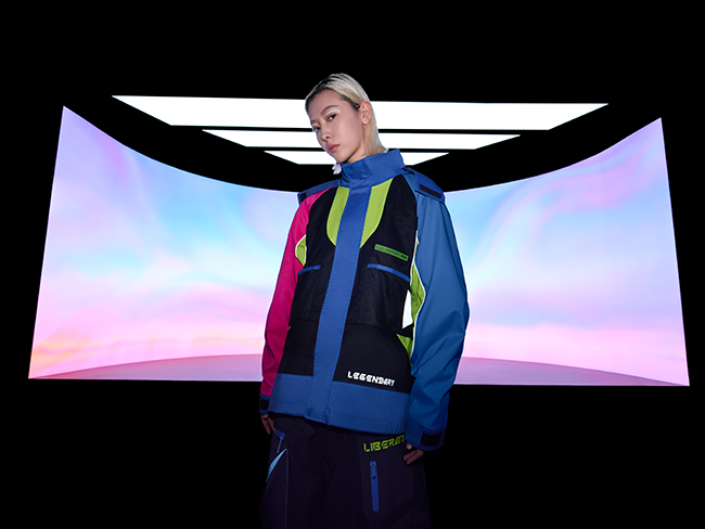 此番合作,LNG 透过虚拟视角被重新审视和融合,颠覆现实日常与传统的装扮。此次发布的 「2022 春夏系列」中则进一步验证了 LNG 为解放未来世代的超前设定。在 AYAYI 上身的两件系列单品中,LNG 「未来玩家」系列电竞风格外套表面呈现大颗粒荧光撞色风格,并在后背也运用了可拆卸式书包进行装饰。