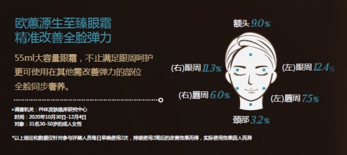 眼周肌肤的厚度会比脸颊肌肤薄很多,一天之中人们眨眼次数高达上万次,以及随着春日到来,紫外线照射的强度也随之加大,就更容易出现松弛、老化等问题。欧蕙在春日为脆弱的眼周肌肤带来弹力奢养体验。