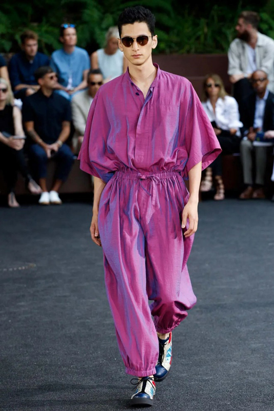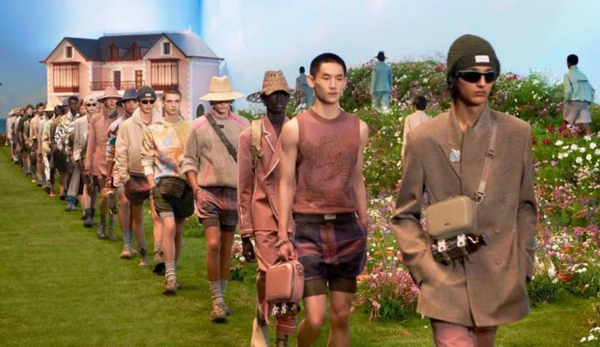 而转换到我们日常生活中的穿着场景,丰富的色彩的确比多数人舒适圈里的黑白灰更加挑人,但穿对也着实出彩。在当季的23春夏时装周,也有很多奢侈品大牌和设计师品牌给出了关于色彩的穿搭模板。例如,迪奥男装的艺术总监KIM JONES在23春夏系列中回溯了Christian Dior先生的「梦中乌托邦」法国格兰维尔花园,以及他本人钟爱的查尔斯顿庄园。那些从自然景色中提取出来的柔和色彩,中和掉了男人钝而硬的男性气息,用粉红色、浅蓝色、淡紫色,将朝气与活力和花园的草坪花朵融合得恰到好处。
